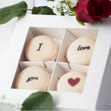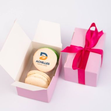 Makaroniki firmowe to eleganckie, smaczne i zapamiętane upominki korporacyjne – francuskie ciasteczka z nadrukiem logo firmy, napisem czy dedykacją. Idealne jako podziękowania dla klientów, prezenty dla pracowników, upominki na targach i konferencjach, gadżety na eventy firmowe czy świąteczne prezenty biznesowe. Każdy makaronik jest ręcznie wykonany, wypełniony kremem premium i opatrzony jadalnym nadrukiem Twojego logo w pełnym kolorze. Pakujemy je w eleganckie pudełka brandowane Twoim logiem. To nie plastikowy gadżet – to pyszny, premium produkt który pokazuje klasę Twojej firmy i zostaje zapamiętany.