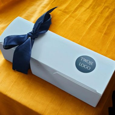 Pudełko będzie przewiązane wstążką w wybranym kolorze. Kolor wstążki należy podać w formularzu zamówienia.
